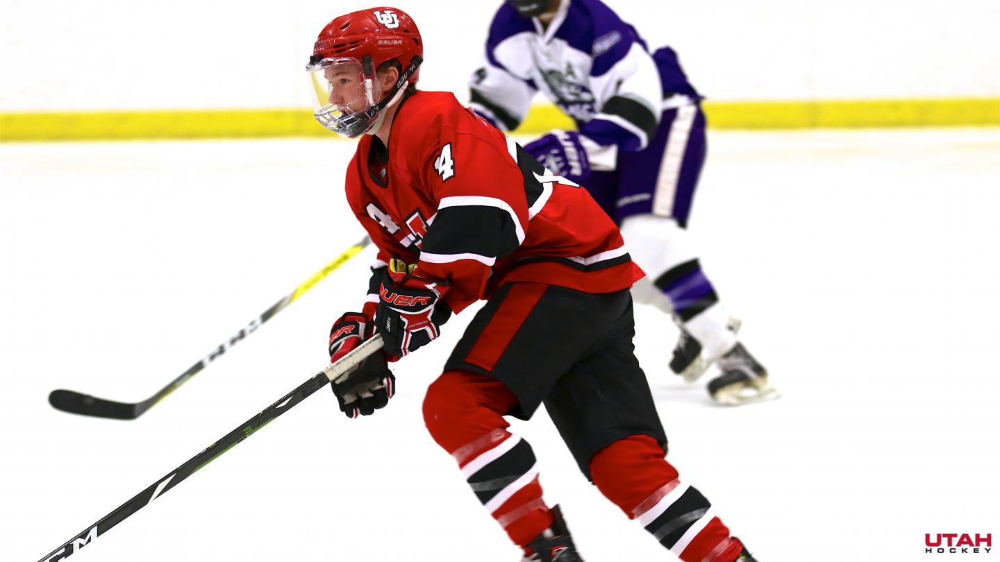 Utah Forward Zachary Jerome skates the puck during the game versus Weber State on October 19, 2019.