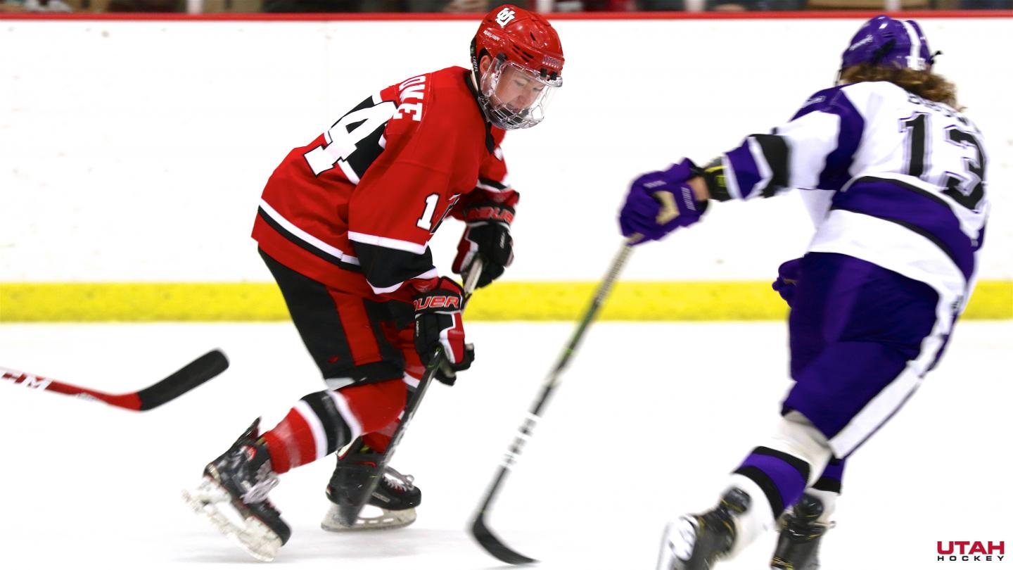Utah Forward Zachary Jerome skates the puck during the game versus Weber State on October 19, 2019.