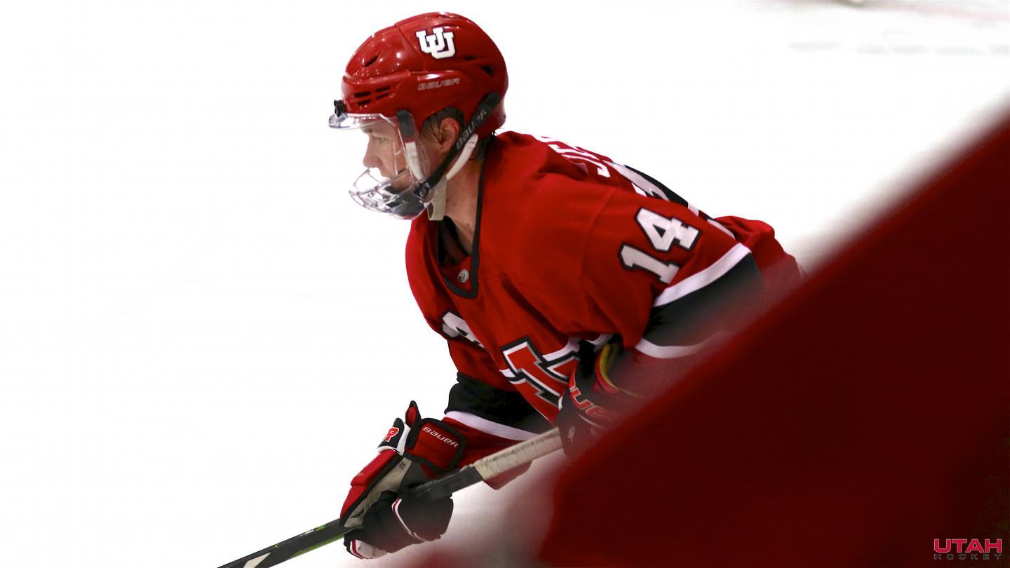 Utah Forward Zachary Jerome skates the puck during the game versus Weber State on October 19, 2019.