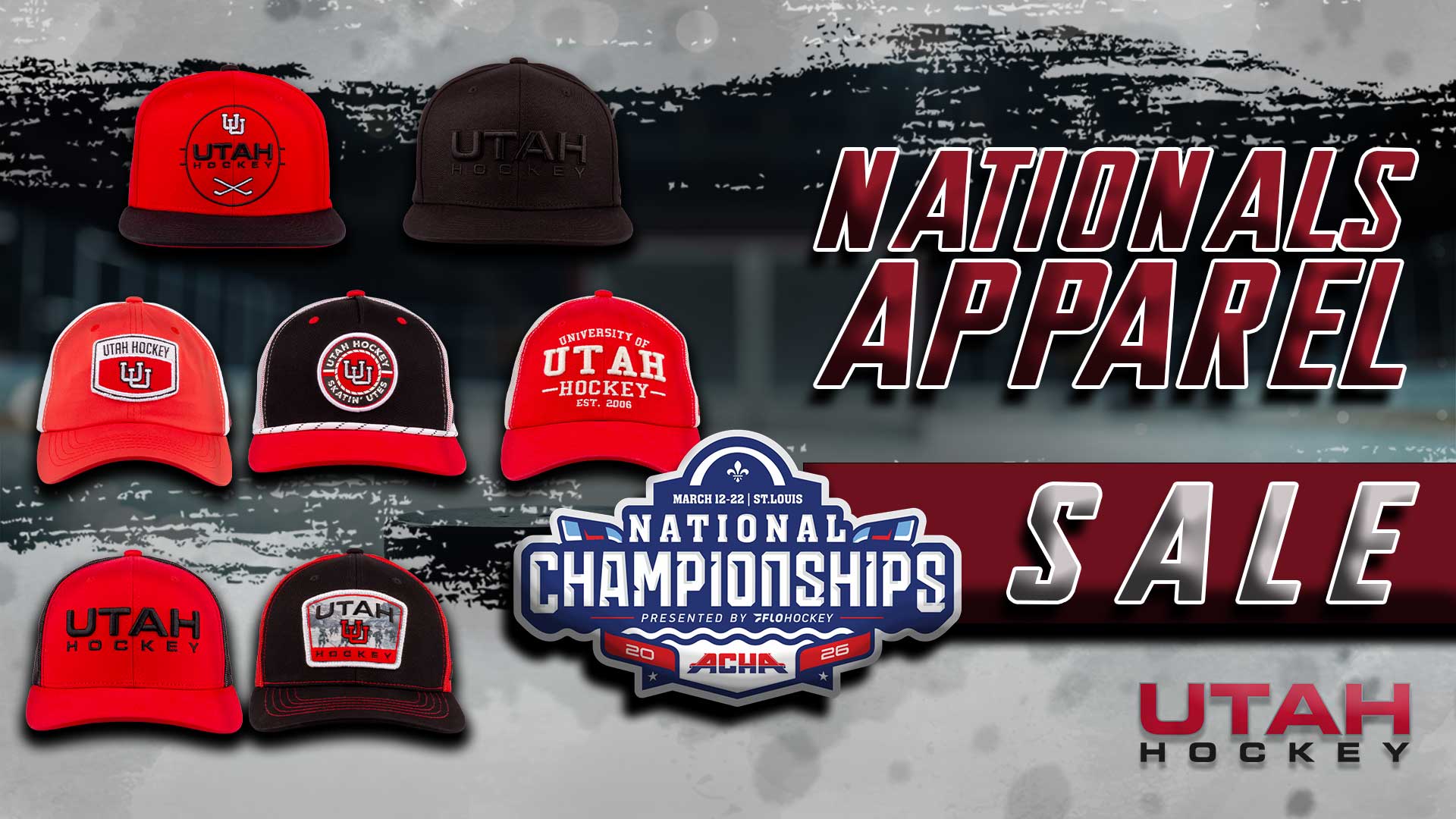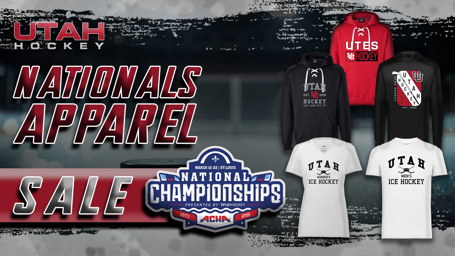 To celebrate both the Men’s Division 1 team heading to the American Collegiate Hockey Association National Championship Tournament, Utah Hockey is celebrating with a Championship Season Apparel Sale!
