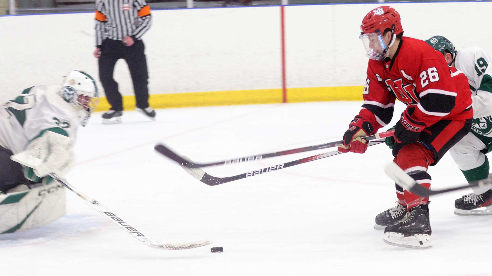 Goaltending continues to be phenomenal with all three goalies exhibiting game winning numbers; #32 Garrett Fuller with 2.21 GAA with 17 games played, #31 Joey Greilich with 1.80 GAA with 5 games played, and #30 Lawrence Letey with a 1.00 GAA with 2 games played.